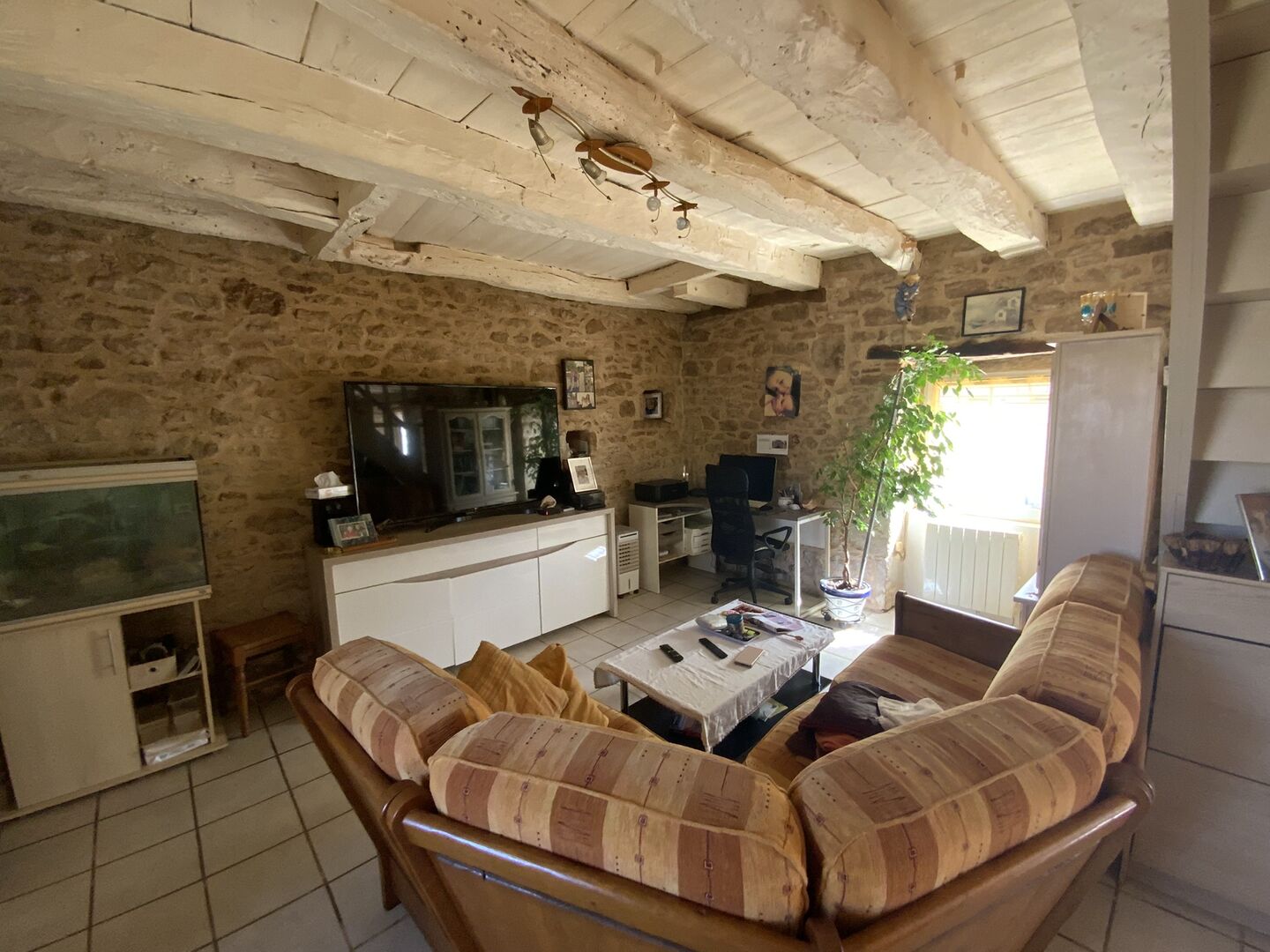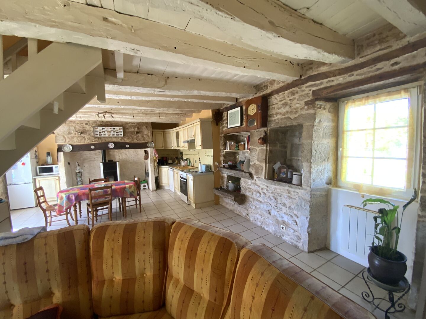 Situated in a quiet and pleasant hamlet, this charming stone house offers a peaceful living environment. On the ground floor, it comprises a living room with an open-plan kitchen. Upstairs, two bedrooms and a shower room with a toilet complete the property. Set across several plots covering a total area of 1,813 m² of wooded land, the property also features a covered terrace, a utility room/pantry and several storage areas. The outbuildings offer potential for additional storage or conversion as required. A recently built swimming pool, with timber cladding and a terrace fitted with an alarm and lighting, completes the property. The house and its grounds have been regularly maintained and are in good overall condition. Information on the risks to which this property is exposed is available on the Géorisques website: www.georisques.gouv.fr